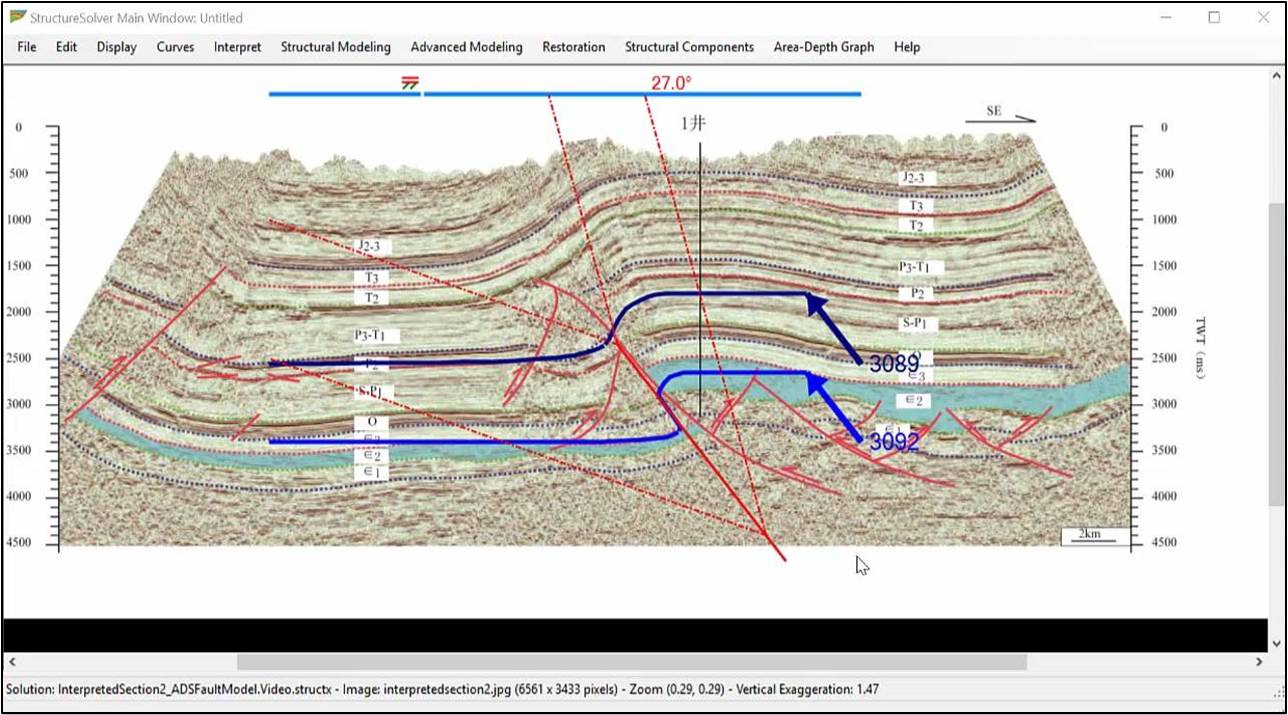 Structure Solver (简称SS)软件功能强大,简单实用,人机交互性好,具有对地震和地质剖面进行精确和简化解释的特点,是目前全球唯一一款综合了构造解释、构造复原、构造模拟及面积—深度—应变分析功能又强调褶皱与断层之间定量关系的全新软件,其中一键式构造恢复和交互断层弯曲褶皱模拟技术获得美国专利(专利号#8798974)。Structure Solver软件可以帮您了解构造和地层之间的相关性、推断过断层的地层对比、证实断层和圈闭的几何形态以及确定滑脱面、断层轨迹、位移和内部应变 ,目前已在四川、塔里木、准噶尔和渤海湾等盆地得到成功应用,并得到广泛认可。